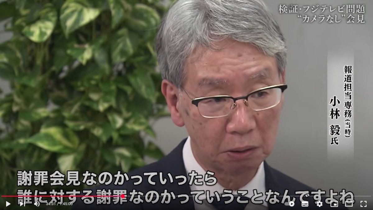記事に戻る フジテレビはどこまでフジテレビを検証できたのか? 「検証 フジテレビ問題」を徹底的に考察してみたの写真一覧 下に画像が続きます 会見当時、報道担当の専務を務めていた小林氏(写真:フジテレビ公式YouTubeチャンネルより) 4/9