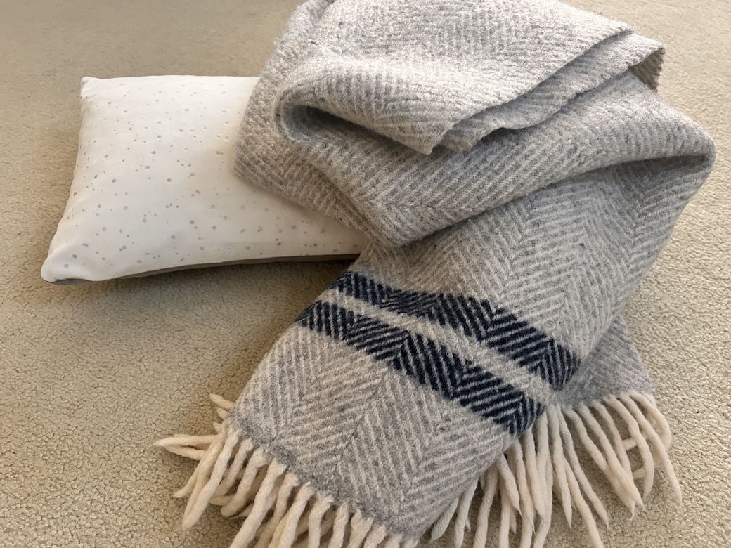 お気に入りのクッションとブランケットがあれば、メディテーションの時間がいっそう心地よくなる。出しっぱなしにしていてもインテリアに溶け込むデザインがおすすめ(筆者撮影)