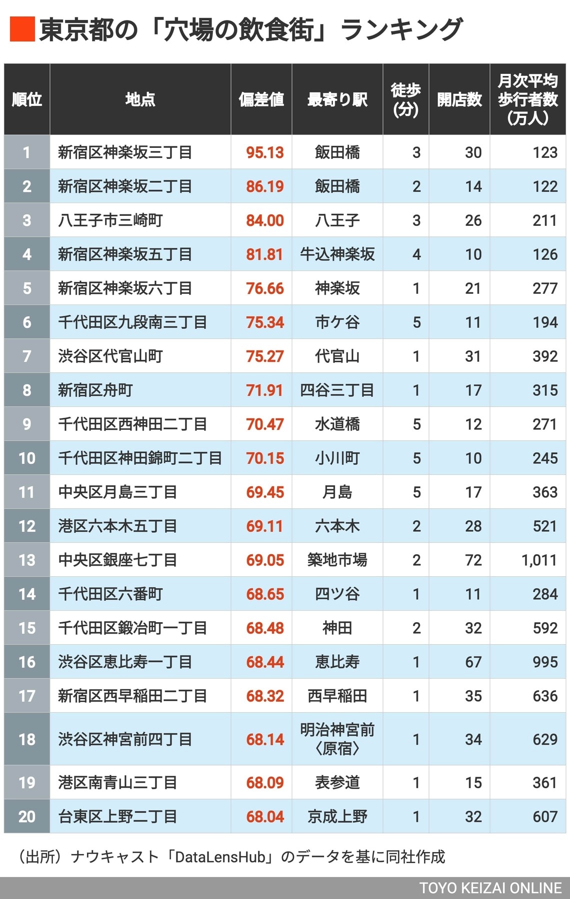 3大都市圏の混雑知らずのグルメエリアを独自集計! 東京・神奈川・大阪「穴場の飲食街」最新60地点ランキングの写真一覧