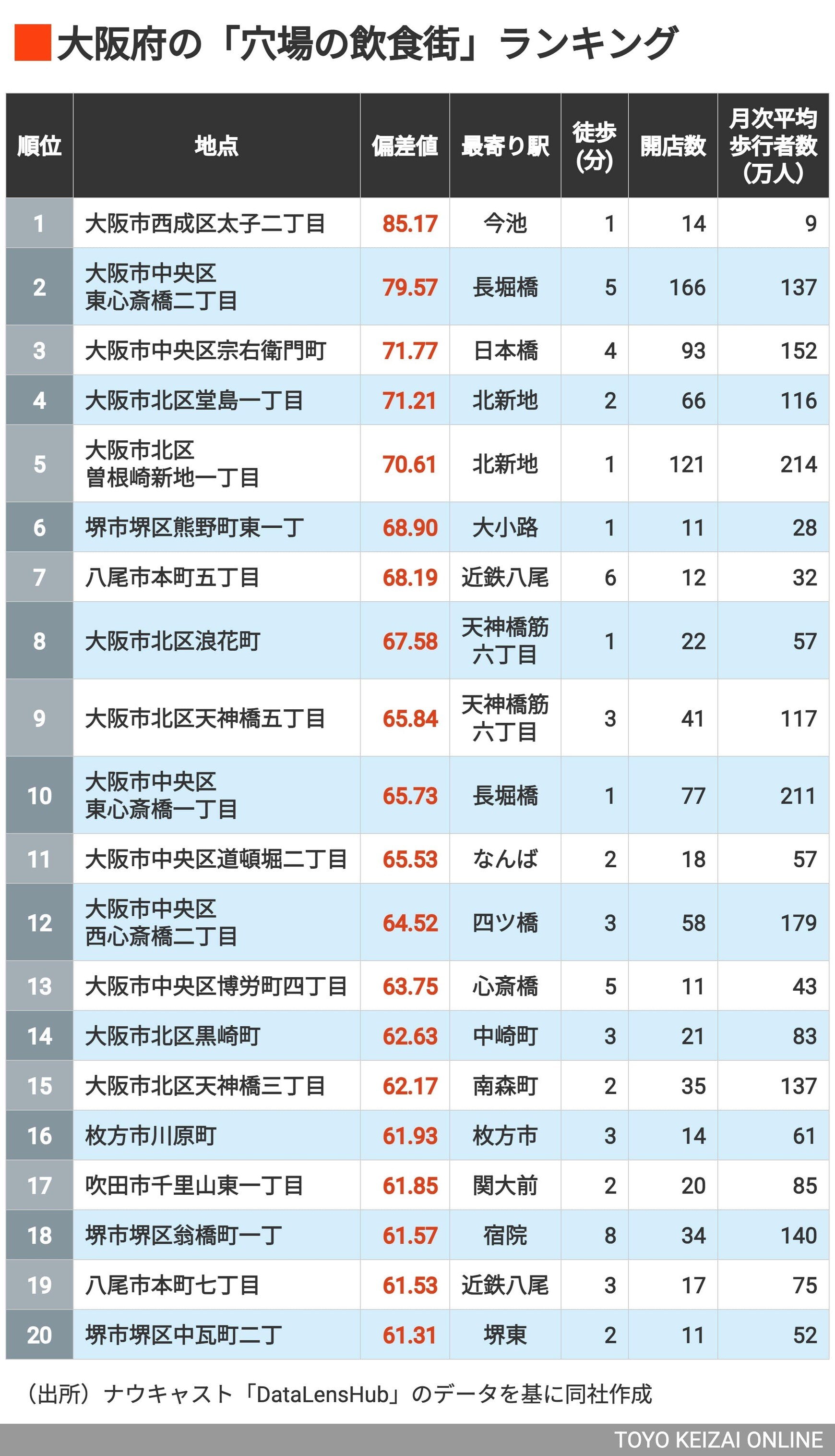 3大都市圏の混雑知らずのグルメエリアを独自集計! 東京・神奈川・大阪「穴場の飲食街」最新60地点ランキングの写真一覧