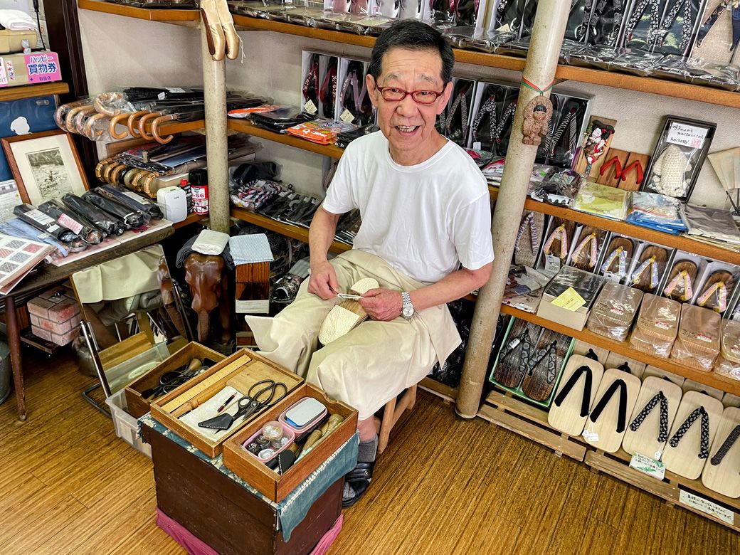 記事に戻る 「3億円タワマン」の下に経営難に陥る創業130年の下駄屋がある街「月島」 新住民と旧住民の間にある"大きな経済格差"によって見えた深い分断の写真一覧 下に画像が続きます あずまや履物店のご主人 楠香一さん。鼻緒のすげ替えを実演してくれた(筆者撮影) 11/17