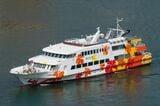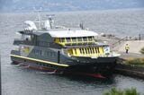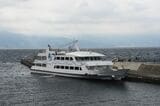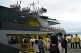 熱海―初島間の定期旅客航路「初島リゾートライン」に就航した富士急グループの高速船「金波銀波」(記者撮影)