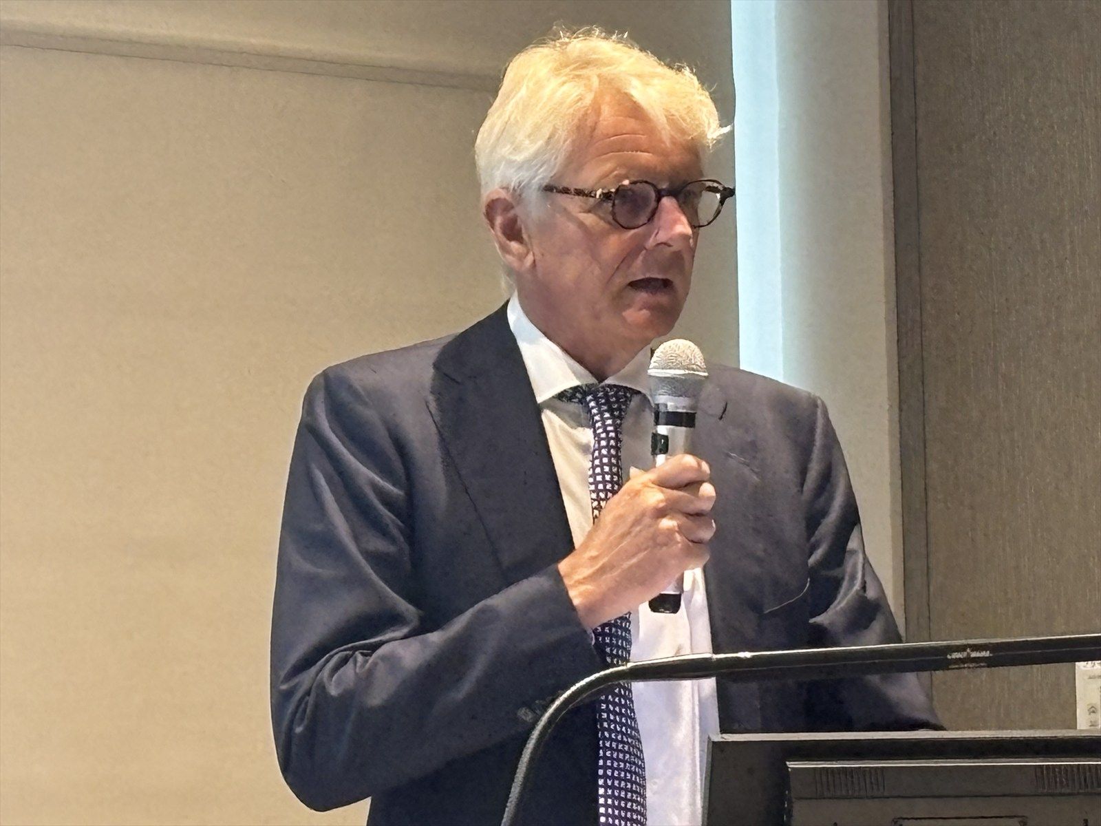 事業説明をするTomTomのハロルド・ゴダインCEO(筆者撮影)