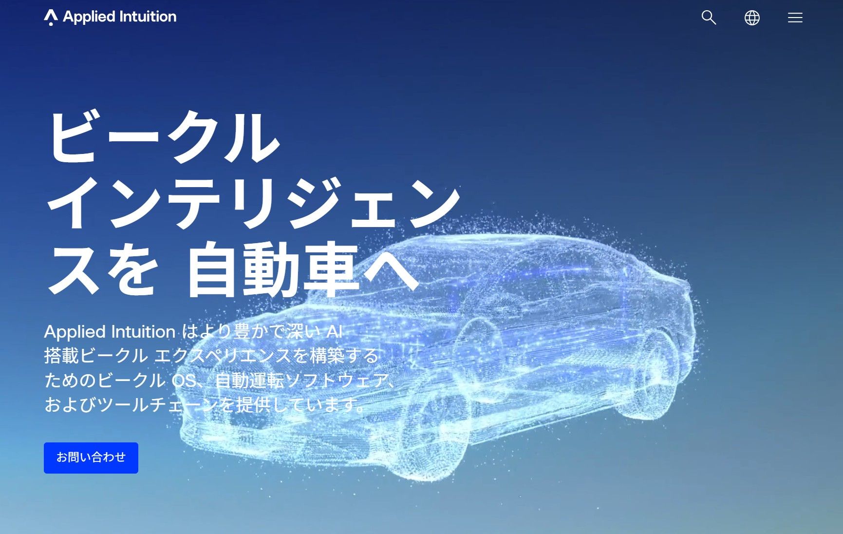 同社ホームページでは「ビークル インテリジェンスを◯◯へ」とさまざまな分野に応用していることを強調する(Applied Intuitionホームページより)
