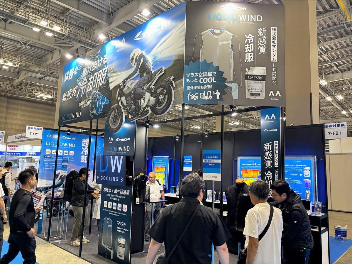 記事に戻る 最大マイナス30℃の冷却グッズも登場!"義務化元年"の「猛暑対策製品の展示会」がガチでスゴすぎたの写真一覧 下に画像が続きます オートバイ専用冷却ベスト「LIQUID WIND」のブース(写真:筆者撮影) 8/19
