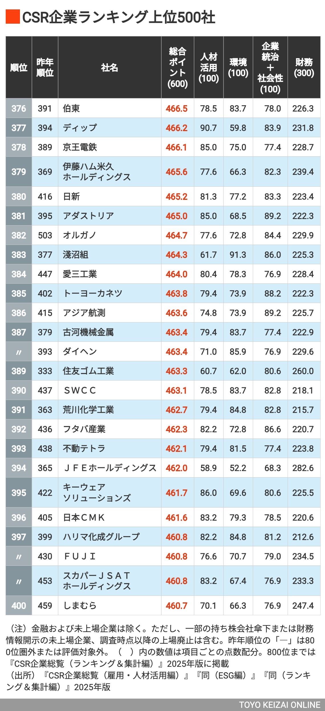 『週刊東洋経済』2025年3月8日号で上位300社まで発表した第19回「CSR企業ランキング」(2025年版)。今回…