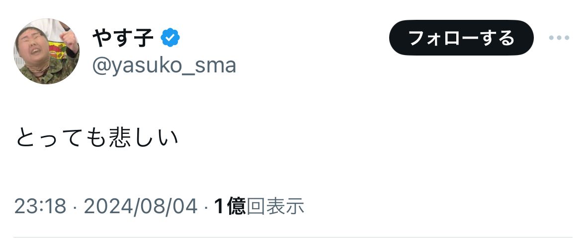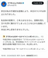 フワちゃんからの“暴言”を受けてポストしたやす子さん(画像:本人の公式Xより)