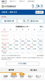 高速バス4列標準シートの料金スクショ(著者撮影)