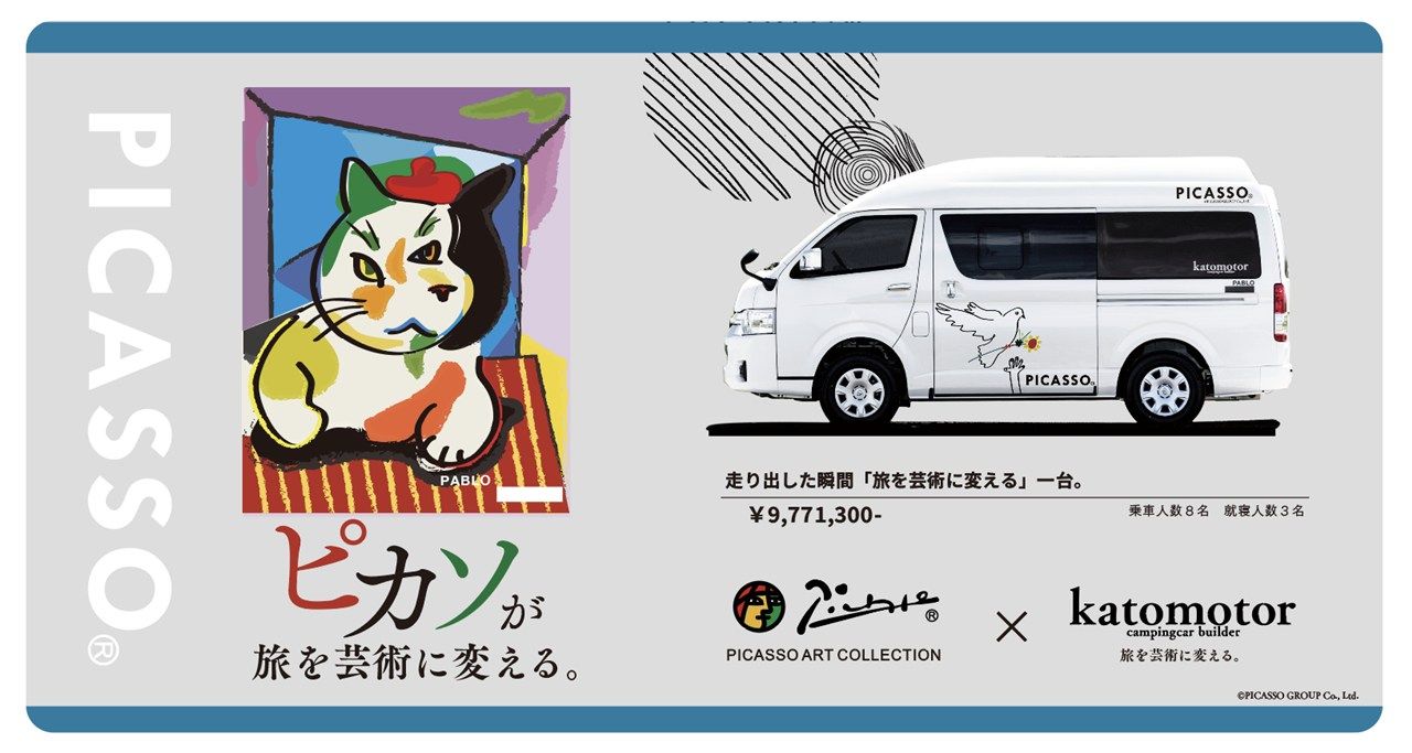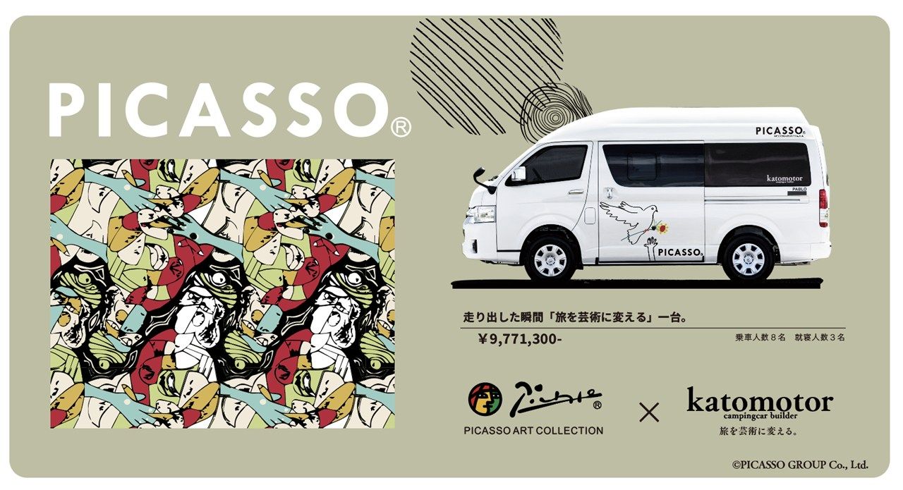 記事に戻る 【限定5台という希少価値、ハイエース×アートの意外性】芸術家ピカソの絵画を内外装に施した個性派キャンピングカー「パブロ」の真価の写真一覧 ピカソのアートともに旅を楽しめる、加藤モーターの新作キャンピングカー「パブロ」(写真:加藤モーター) 1/29 下に画像が続きます ピカソのアートともに旅を楽しめる、加藤モーターの新作キャンピングカー「パブロ」(写真:加藤モーター) 2/29