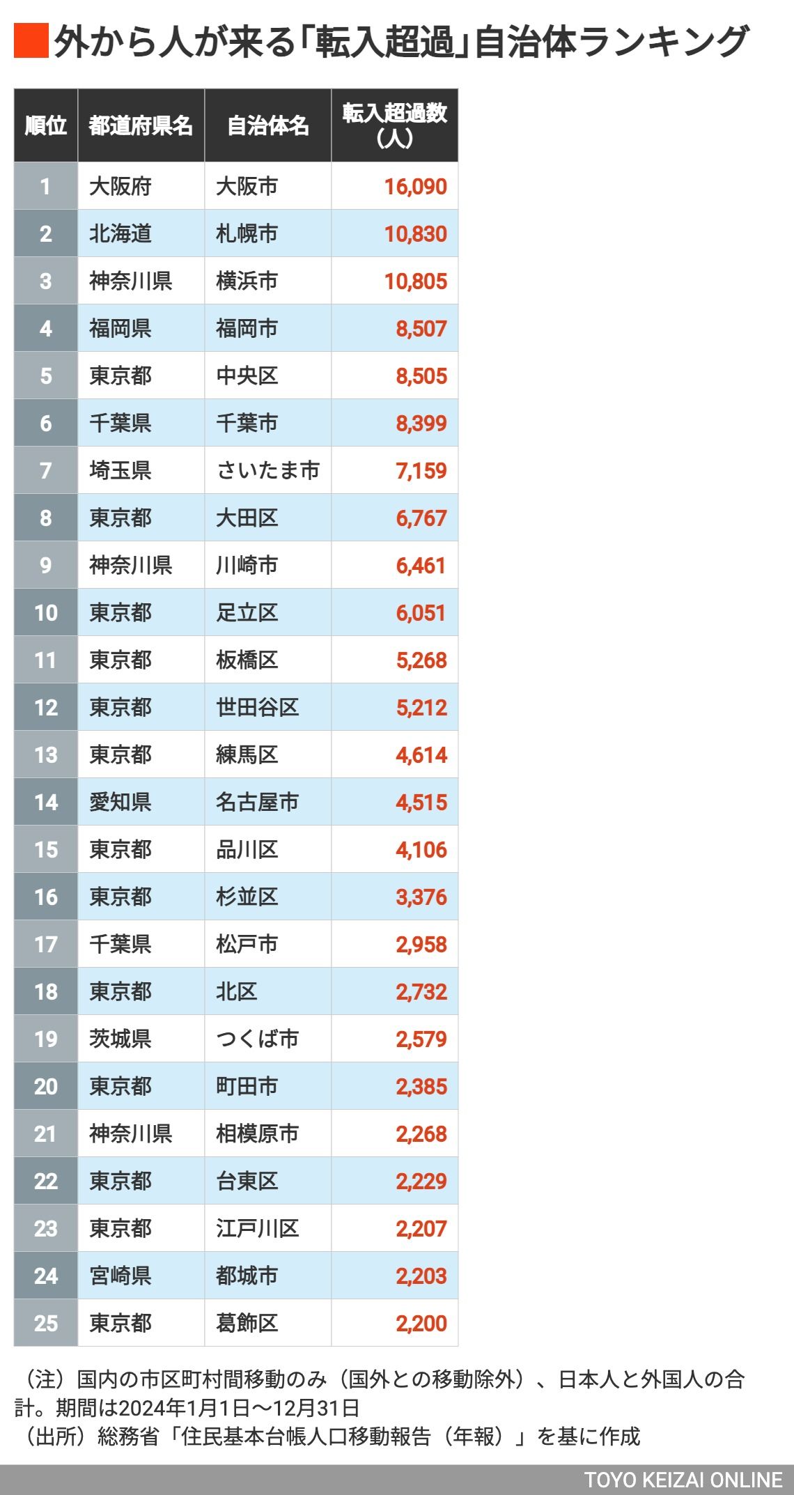 出て行くより入ってくる「転入超過」自治体ランキング! 3位は横浜市、2位札幌市、では1位は?