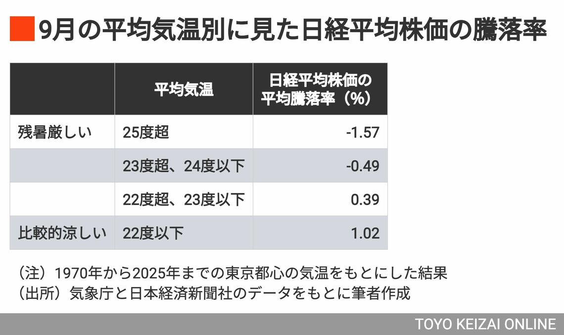 「暑い9月は株価が安く、涼しい9月は株価が高い」データが示す意外な関係