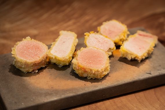 記事に戻る 《万博》唯一の個人店が挑んだ「冷凍だらけ」の現実 生食材からの完全手作りで、1日7回転の大繁盛とんかつ店を生んだ"執念"の舞台裏の写真一覧 ひと品ひと品、カットも味わいも全く異なるとんかつ(写真提供:とんかつ乃ぐち) 1/22 下に画像が続きます 筆者が食べたコースに登場した、静岡県産の銘柄豚『LYB豚(ルイヴィトン』肩ロース。パンを思わせるやわらかさで、噛むほどに、控えめな甘みが感じられる(筆者撮影) 2/22