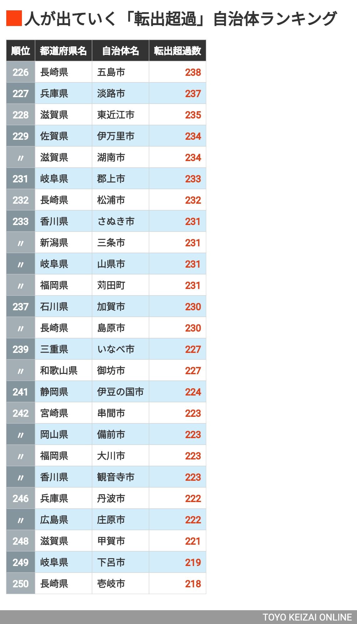 大都市圏への人口集中が続く中、人口流出が目立つ自治体はどこなのか。総務省が公表する「住民基本台帳人…