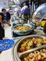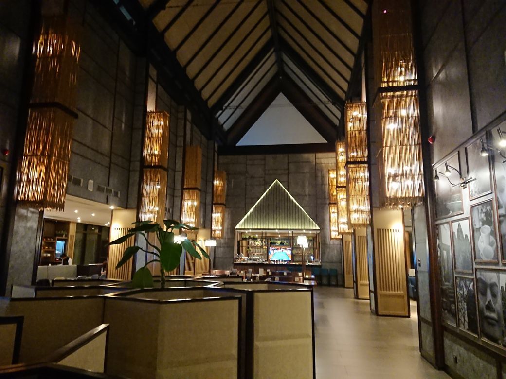 カンボジアのラウンジは超豪華。食事はビュッフェ+オーダー形式。出国ゲートを抜けた制限エリア内にあるにもかかわらず、ラウンジには中庭が付いており、空を見上げることができる(筆者撮影)