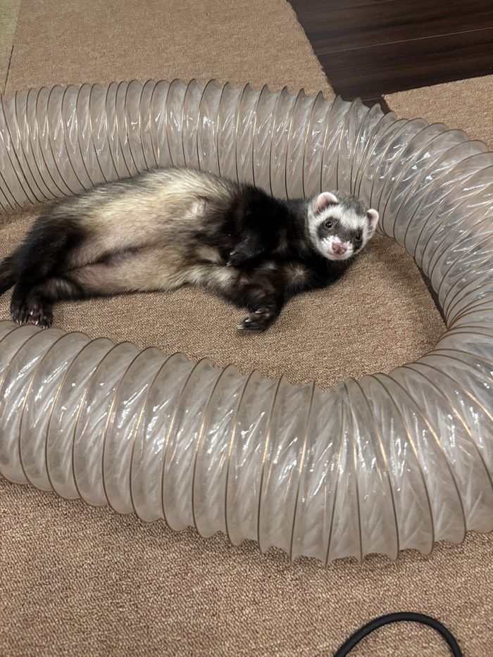 記事に戻る フェレットを迎えて華やいだ「第二の人生」 子育てを終えた夫婦の会話を変えた幸せな時間の写真一覧 下に画像が続きます 巣穴に入りこむ習性から、長いトンネルの遊具をくぐって遊ぶのが好き(写真提供:ミキさん) 10/37