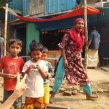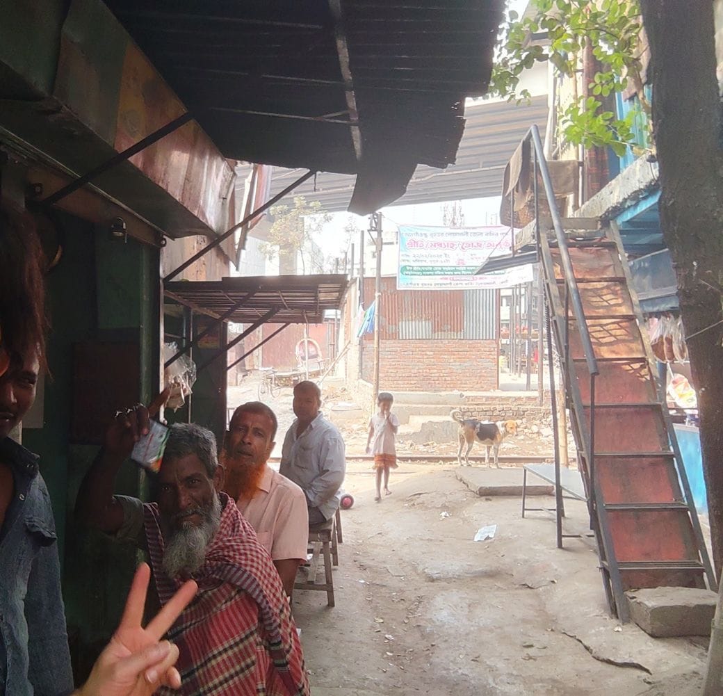 おにぎりせんべいを持って写真撮影に応じてくれた、バングラデシュの長老、かどうかは不明な男性(筆者撮影)