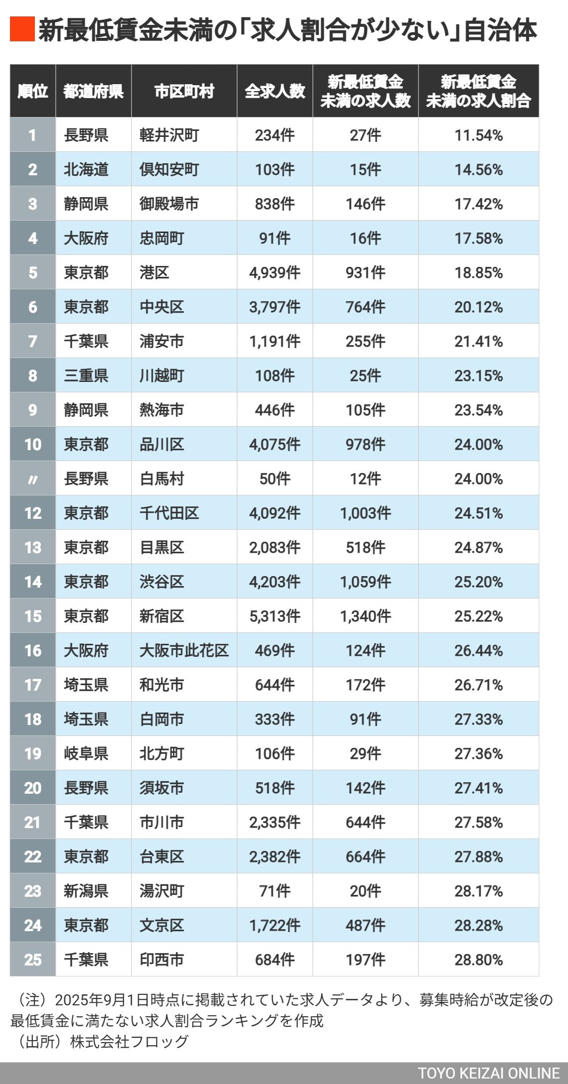 3位は御殿場市、2位は俱知安町、1位は…? 「新最低賃金に満たない求人」が"少ない"市区町村ランキングTOP100
