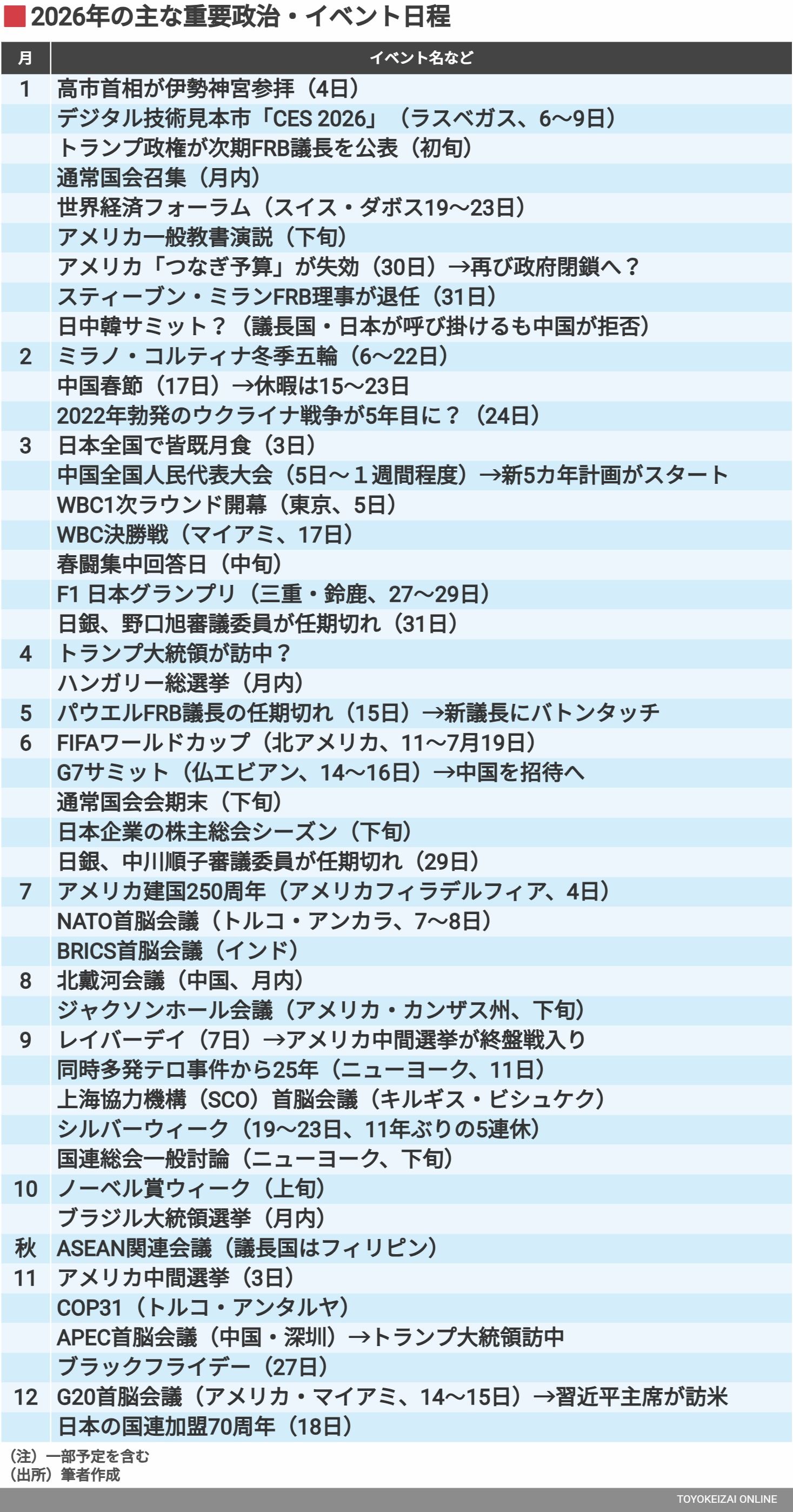 高市首相は解散・総選挙見送り?米中関係は「ディール成立」?……どこよりも早い「2026年カレンダー」で来年の投資を考えよう