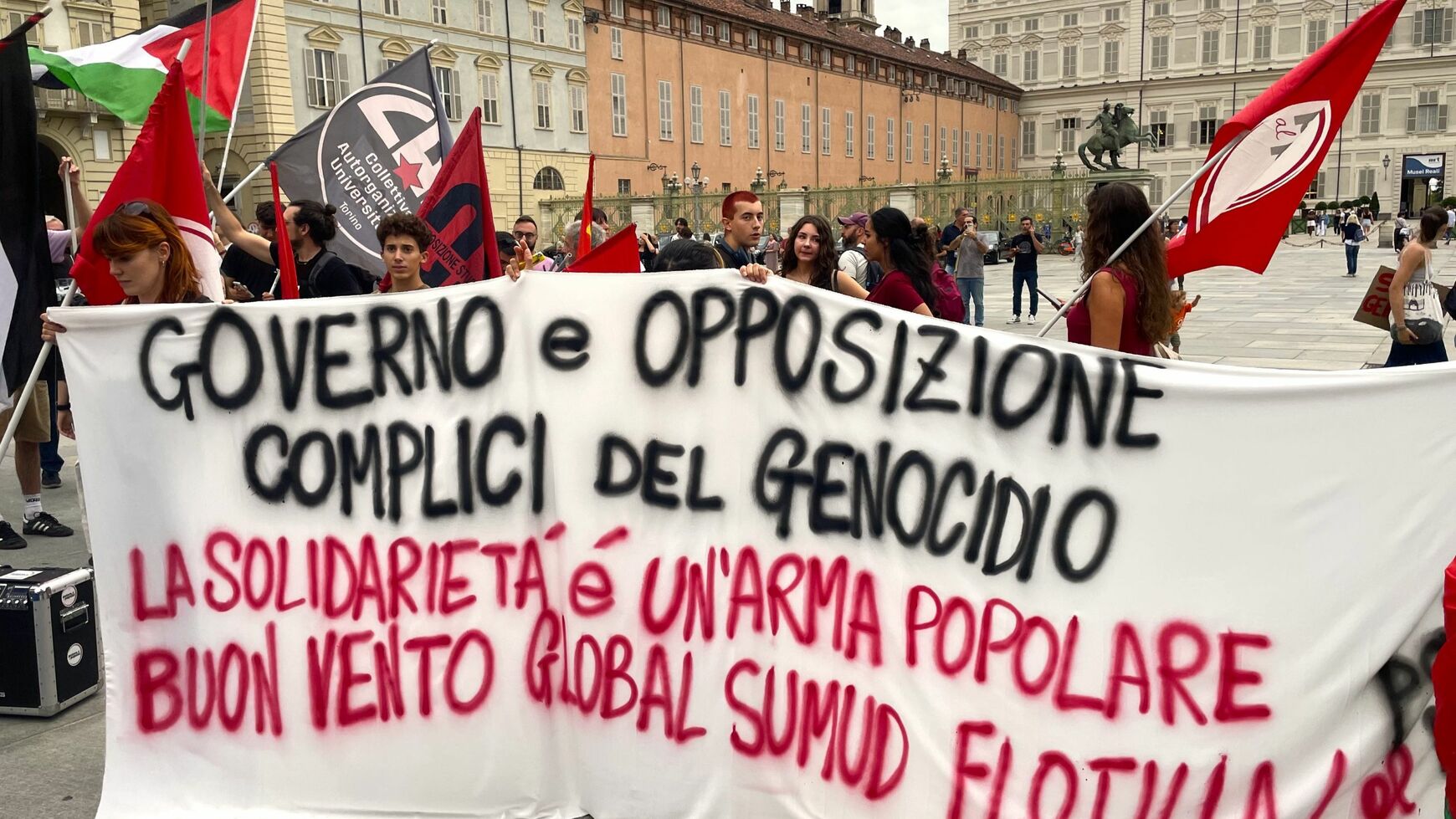 記事に戻る 「監獄で銃を頭に突きつけられた」「怖い犬が入ってきた」。イスラエル軍に拘束された「イタリア人活動家」が激白…《ガザに向かった船団》の舞台裏の写真一覧 イタリアでは9月以降、ほぼ毎週末、人が集まり抗議活動が行われている。写真は9月4日にトリノの王宮前に集まった人々。「政府与野党はジェノサイドの共犯」「連隊することが市民の武器だ!」と書かれている(写真:筆者撮影) 1/5 下に画像が続きます アブデラマン・アマジュさん(39歳)。出発前のシチリアの港にて。乗船にあたっては、航海訓練のほか、万が一の攻撃や拿捕に備え、危険を最小限に抑える取り決めも話し合われたという(写真:アマジュさん提供) 2/5