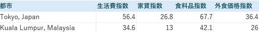 記事に戻る 「日本の調味料は"嗜好品"?」「外食、食品は?「まだ安い」と言われるマレーシア"教育移住"実際にかかる"驚きの生活コスト" の写真一覧 マレーシアのスーパー。南国らしく色とりどりのフルーツが並ぶ(写真:筆者撮影) 1/6 下に画像が続きます (出典:『NUMBEO』Asia: Cost of Living Index by City 2025 Mid-year のデータを筆者が表に加工) 2/6