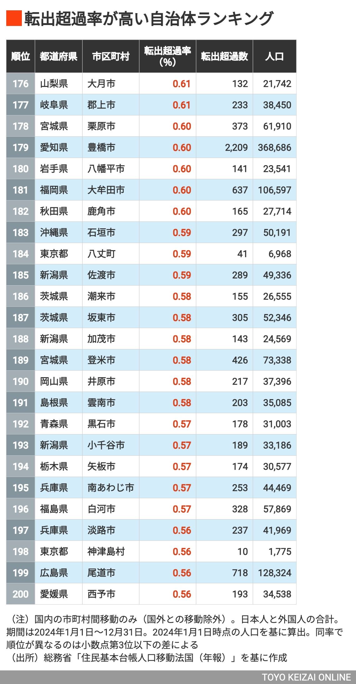 ※この記事は2025年10月公開記事を再配信したものです。人口流出が目立つ自治体はどこなのか。転出超過の…