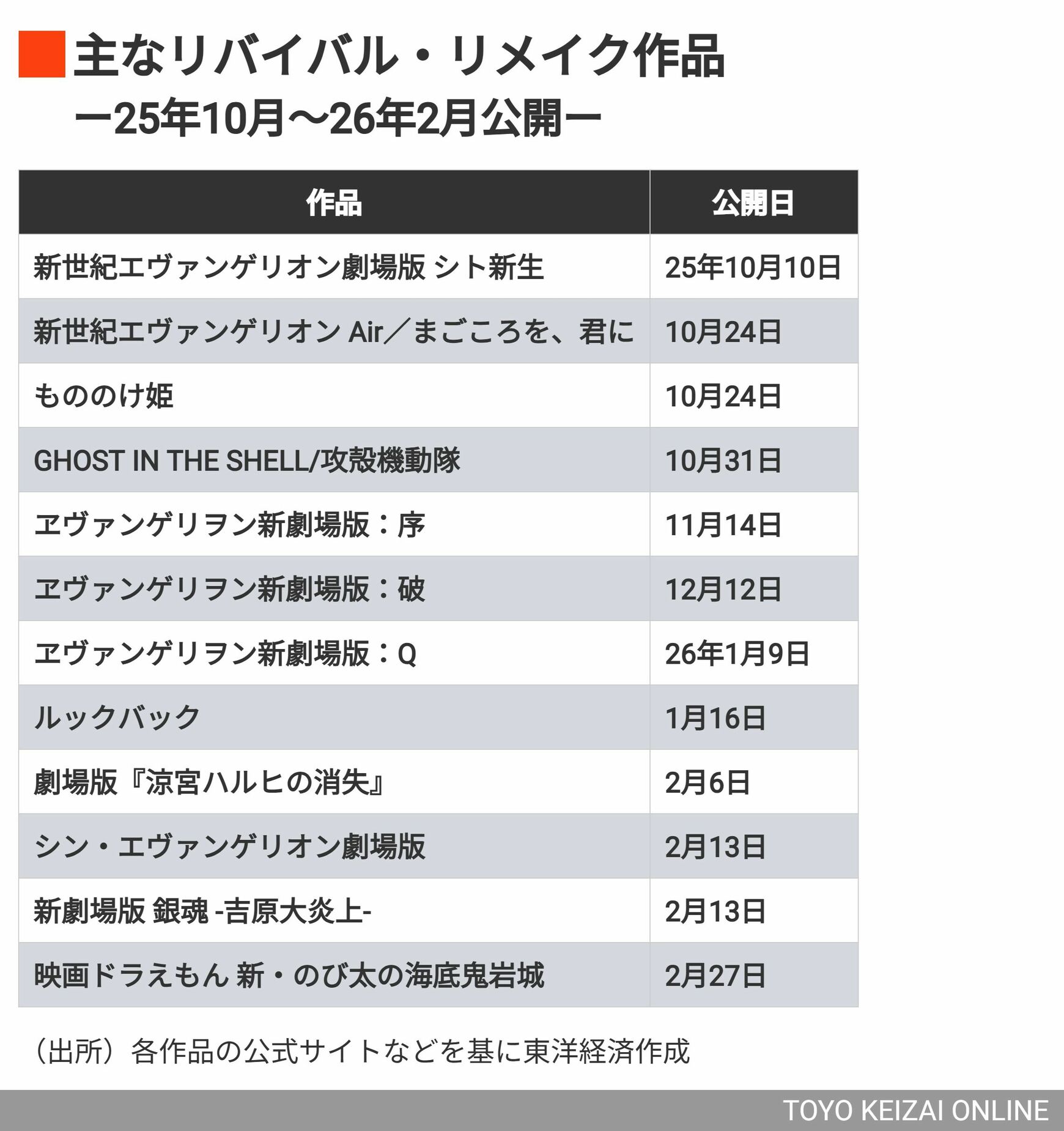 近年、映画館で盛り上がりを見せる「リバイバル上映」。宮﨑駿監督作品や『エヴァンゲリオン』の記念企画など、名作が再び大スクリーンに蘇り、旧来のファンはもちろん若い世代も魅了しています。しかしその陰で新作映画の上映機会減少や映画文化の多様性低下という課題も。ヒットの裏に潜む“両刃の剣”の側面とは?