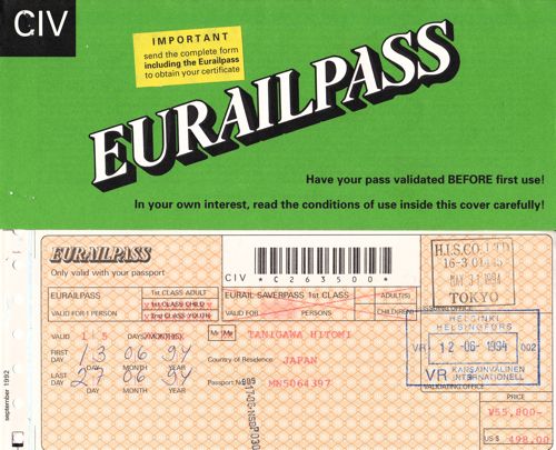 1994年利用時のチケットホルダーとユーレイルパス