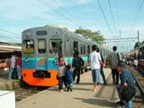 記事に戻る ジャカルタで20年「東急の中古電車」輸出の舞台裏 全盛期はまるで「インドネシア版田園都市線」だったの写真一覧 ジャカルタのアイコンでもあるイスティクラルモスクをバックに高架線を快走する、元東急8000系の8039編成(筆者撮影) 1/35 下に画像が続きます ジャカルタに集った、昭和から平成初期にかけて日本の首都圏で通勤輸送を担ったコルゲートボディのステンレス車両。その中で元東急の車両(右)は最も長く活躍した(筆者撮影) 2/35