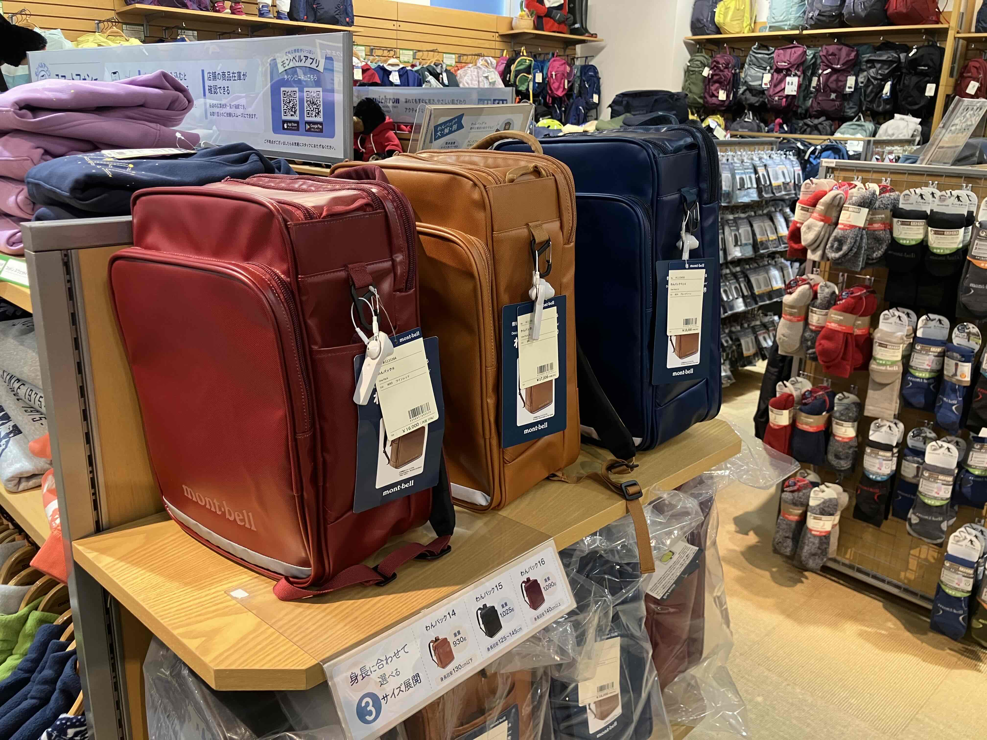 記事に戻る ラン活疲れを癒やすモンベル「1万円台ランドセル」の正体 自治体の無償配布が変えた"通学カバン"の常識の写真一覧 モンベル 品川店に置かれた「わんパック」(筆者撮影) 1/16 下に画像が続きます 赤は「わんパック14」、茶は「同15」、青は「同16」のサイズ。各色14~16サイズがある(筆者撮影) 2/16