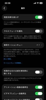 「設定」の「アクセシビリティ」にある「動作」で「視差効果を減らす」をオンにすると、アニメーションが減って違和感がなくなる(写真:筆者撮影)