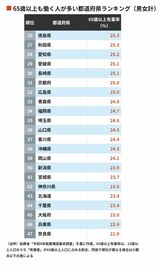65歳以上も働く人が多い都道府県ランキング 3位長野県で2位は山梨県…それでは1位は?