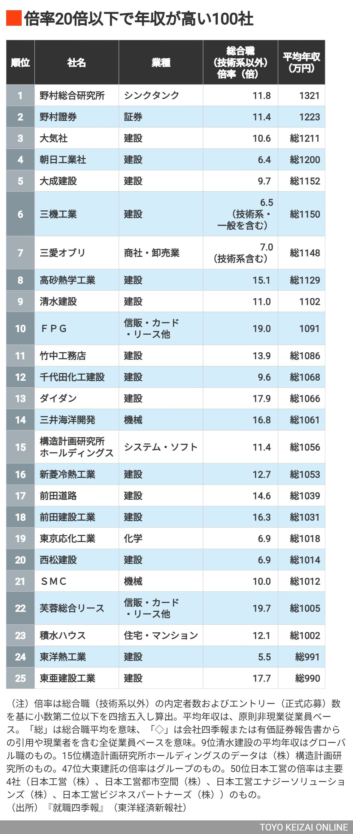 記事に戻る 「新卒で入りやすく年収が高い」TOP100社 年収1000万円超は23社!エントリー候補にしたい低倍率の企業は?の写真一覧 年収が高く倍率が低い企業はどこか (写真:Mills/PIXTA) 1/5 下に画像が続きます 2/5