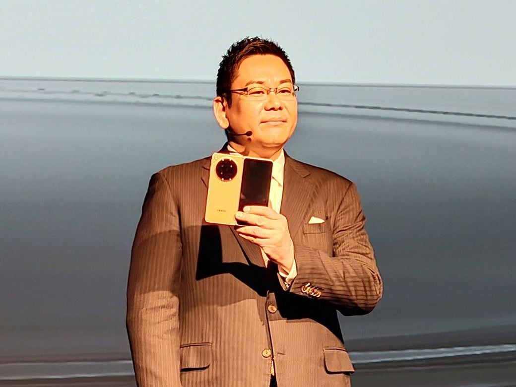 記事に戻る OPPOが日本で「31万円折りたたみ」と「5億画素スマホ」を同時投入、"iPhone一強"市場に挑む戦略の核心の写真一覧 下に画像が続きます 「Find N6」を発表するオウガ・ジャパンの河野謙三専務取締役(写真:筆者撮影) 2/4
