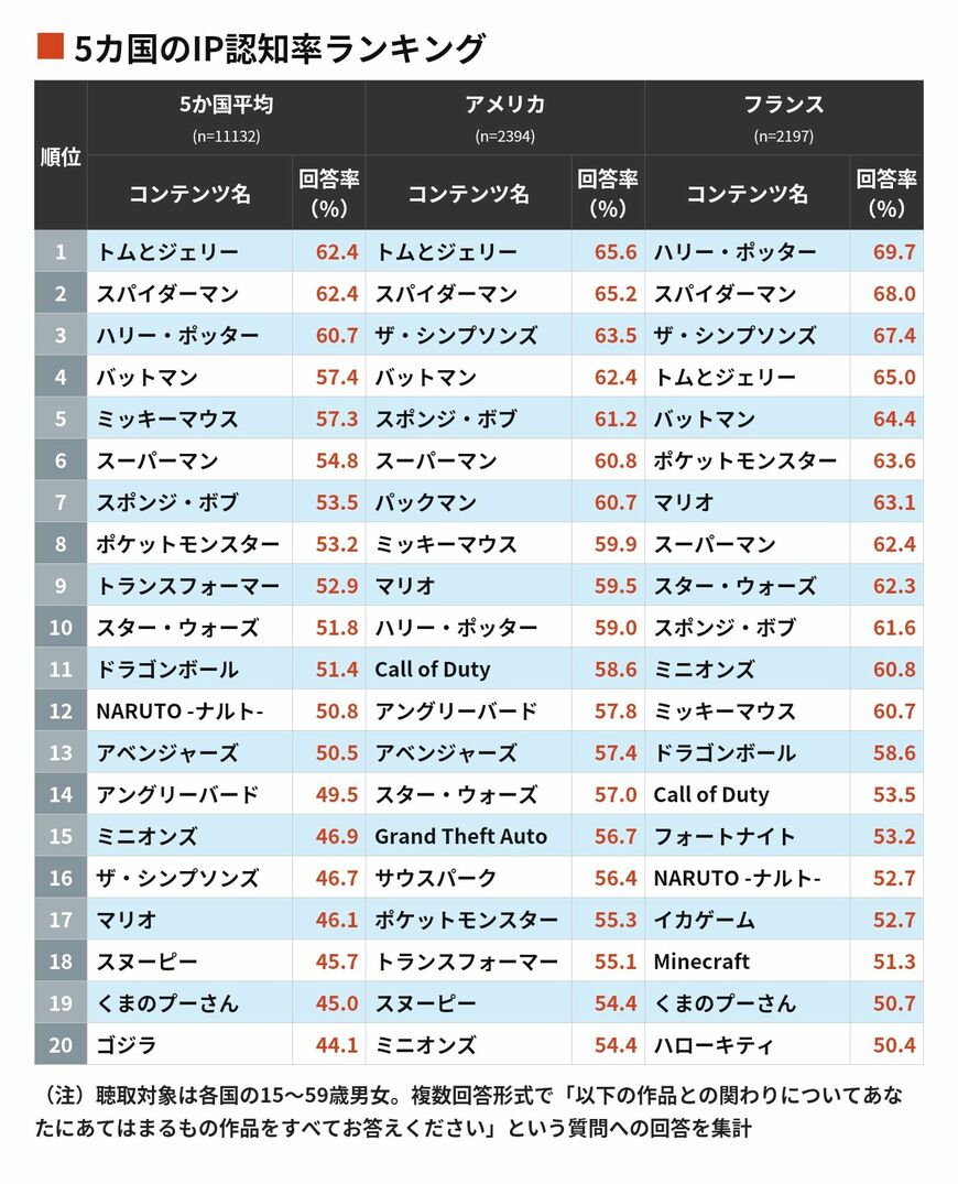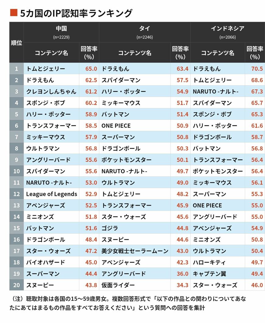 中国ではミッキーマウス超えも…! 海外で認知度が高いマンガ・アニメ・ゲームなどのIPランキングの写真一覧