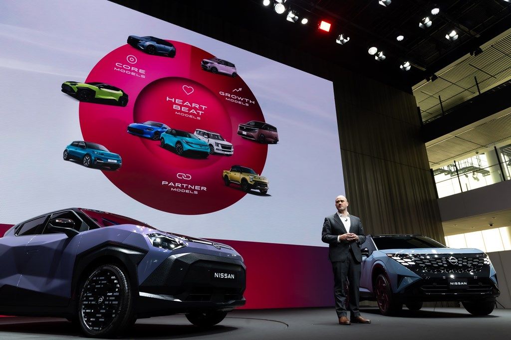 記事に戻る 経営再建に揺れる中での長期ビジョン発表、新型「エクストレイル/ジュークEV/スカイライン」に加え「GT-R」復活も明言の写真一覧 下に画像が続きます 日産自動車が2026年4月14日、本社グローバルギャラリーにて開催した「長期ビジョン発表会」の様子(写真:三木 宏章) 72/99
