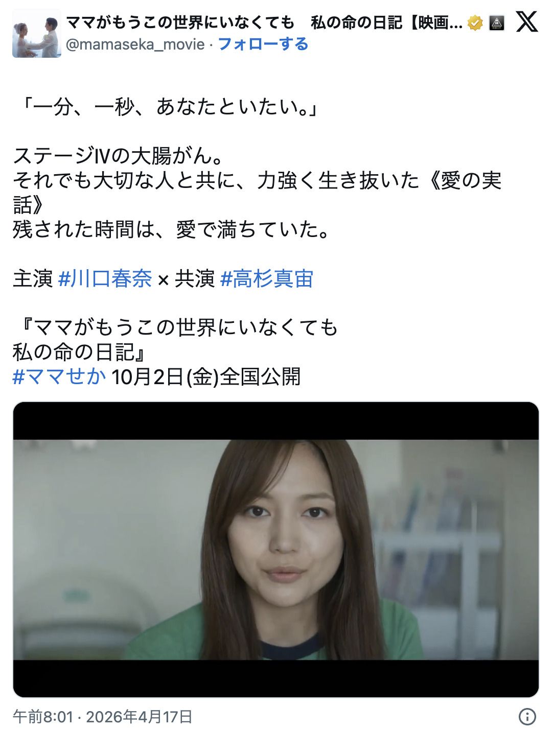 記事に戻る 「吉沢亮や鈴木亮平の"激やせ"は称賛されたのに」《川口春奈の10kg減量》に賛否…男女で反応が真逆になる「理不尽の正体」の写真一覧 映画の公式Xで公開された映像。やや頬がこけているようにも見える(画像:X「ママがもうこの世界にいなくても 私の命の日記【映画公式】」 @mamaseka_movieより) 1/4 下に画像が続きます 英語教師・錦織友一役の吉沢亮は、結核で衰弱していく壮絶な姿を演じた(画像:朝ドラ「ばけばけ」公式Instagram @asadora_bk_nhkより) 2/4