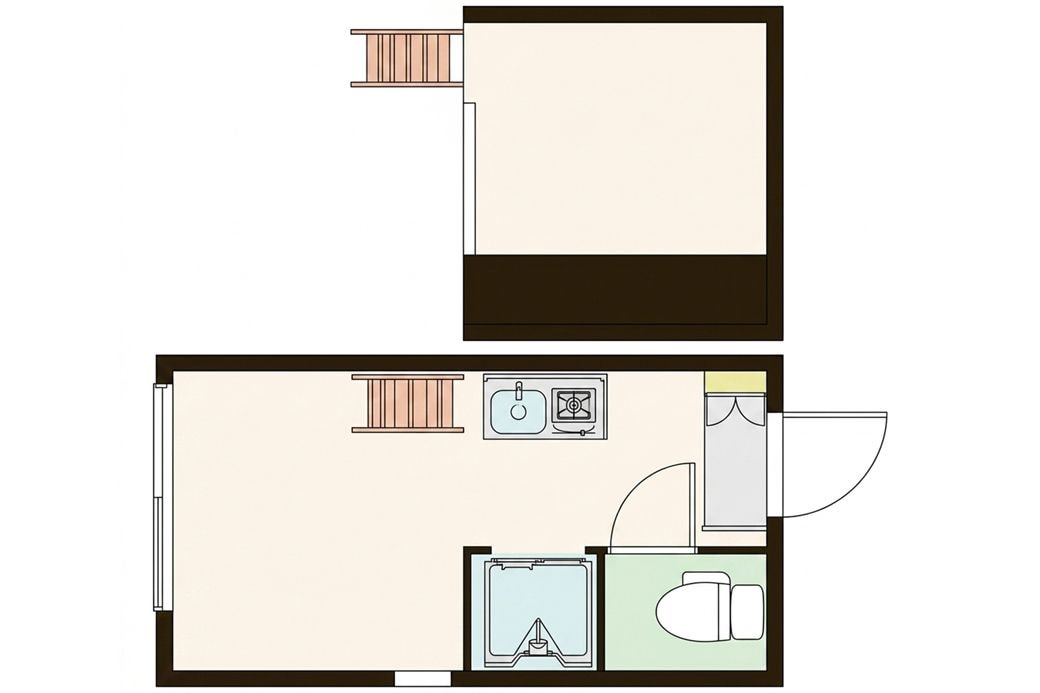 記事に戻る 「狭小住宅が若者に大人気!」とメディアが盛んに報じているが…25m²・6畳1Kに夫婦で暮らす"プロ"が警鐘を鳴らすワケの写真一覧 今人気の都心型狭小住宅の間取り図例。10m²(約6畳)に水まわりの設備も含まれている(画像:筆者作成) 1/7 下に画像が続きます 標準的な1人暮らし向け住宅。最低居住面積水準である25m²で、6畳1Kの間取りで、工夫して2人暮らししている(写真:筆者撮影) 2/7