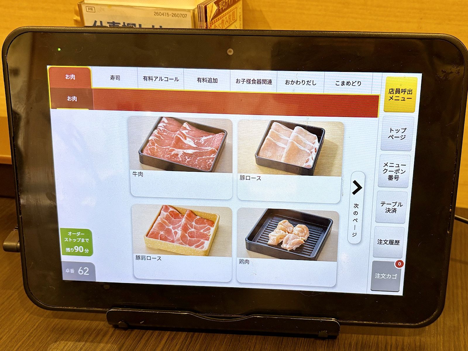 記事に戻る 「ペラペラすぎる」「皿が透けて見える」との声まで…スケル豚が炎上「しゃぶ葉」実際に行って見た"意外な光景"の写真一覧 時間帯や肉の種類で料金が異なる。最も安価なのは、平日の豚ロース食べ放題ランチコース1649円。(筆者撮影) 1/9 下に画像が続きます タッチパネルで注文。平日ディナーは100分の時間制限があるが、平日ランチであれば時間無制限(筆者撮影) 2/9
