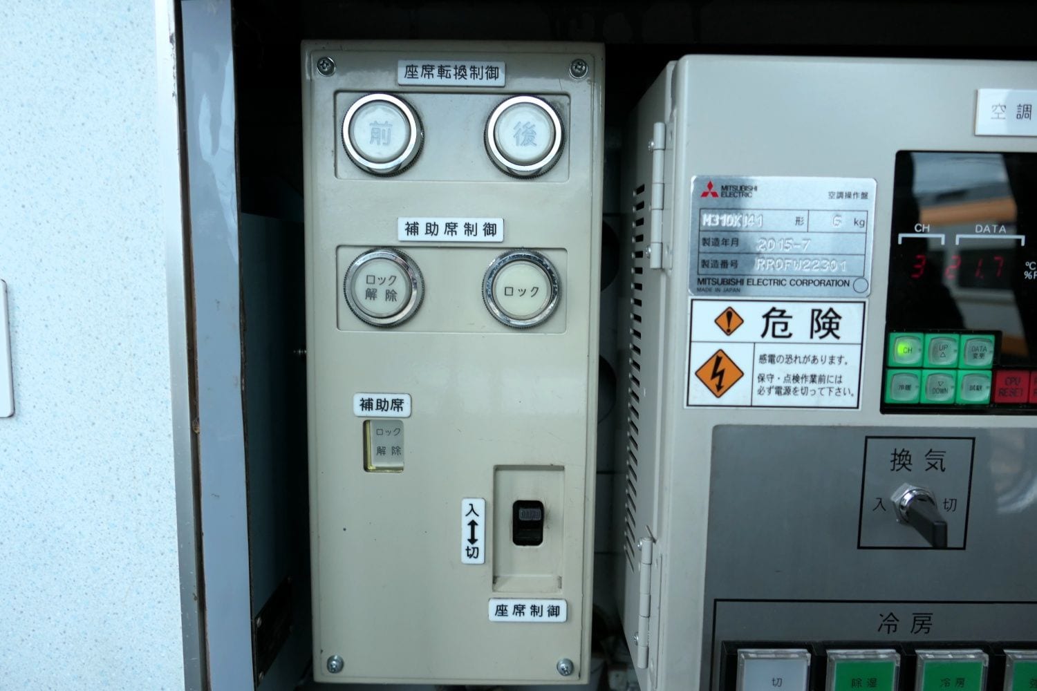乗務員室にある座席制御スイッチ(記者撮影)