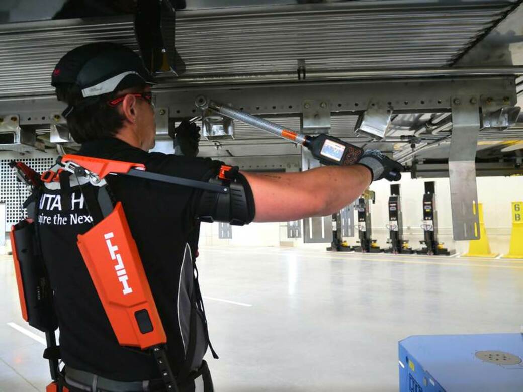 "Sometimes we have to work looking up for 45 minutes straight," said one worker, "but wearing this prevents neck and shoulder pain."