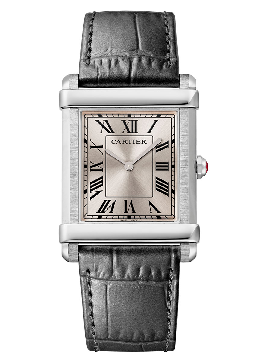 1917年、第一次世界大戦から平和へと導いた戦車の平面図をモチーフに製作された「タンク」。カルティエならではの大胆な発想が、長方形のケースを時計界に定着させる大きな要因となった。この「タンク シノワーズ」は22年に発表されたモデルがベースで、今年はちょうど100周年にあたる。中国の寺院の建築様式から着想を得たデザインから、フランス語で中国風を意味する“シノワーズ”と名付けられている。デザインは大きく2種類用意されており、このモデルはローマンインデックスのスタンダードモデル。もう一方はスケルトンになっており、中国の伝統的な格子窓を思わせるデザインを取り入れたものとなっている。素材、ダイヤルバリエーションで6モデル用意されている。